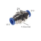 Bulkhead push-in connectors made from nickel-plated brass, standard
